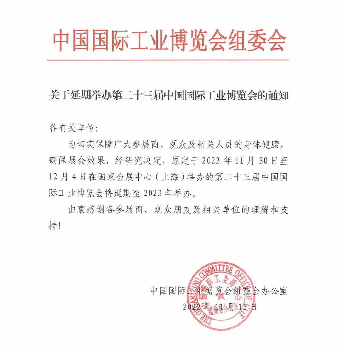 第二十三届中国国际工业博览会延期举办